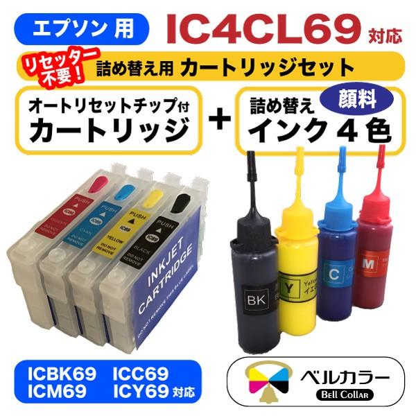 エプソン 互換 Ic69 Ic4cl69 詰め替え カートリッジ 自動リセットチップ 互換 顔料インク 4色 セット 純正の約6倍 3年保証 ベルカラー製 Ep Ic69 Ik4ct1 01 互換インクの専門店ベルカラー 通販 Yahoo ショッピング
